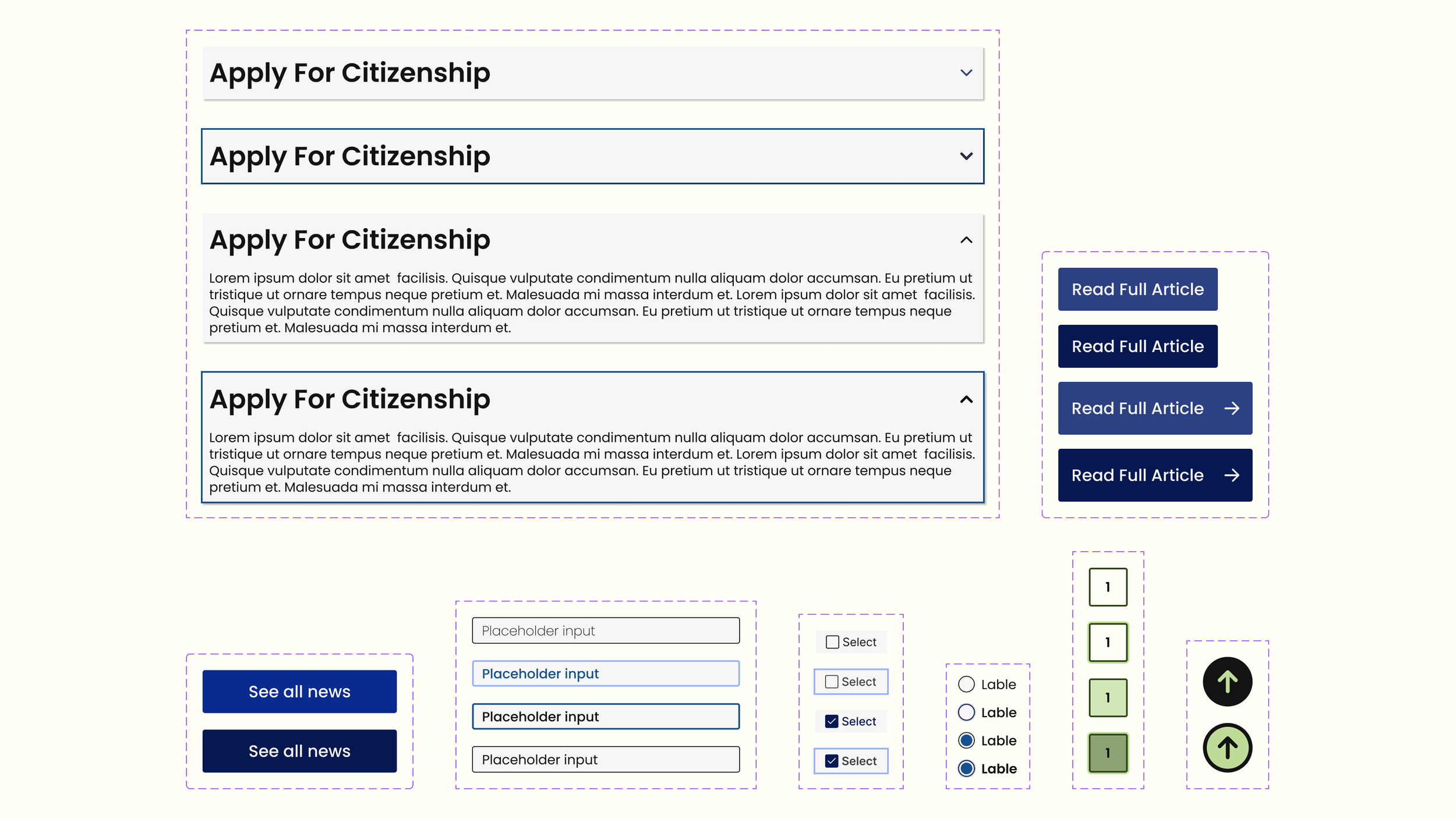 Our research on other government websites influenced the design of cards and hover states. I drew inspiration from how article titles on those sites became lighter when hovered over. For large-scale content buttons, I incorporated hover states that added subtle interactive elements to enhance the user experience.